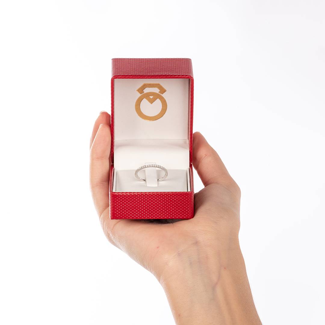 Idealize toda a envolvência da hora em que irá oferecer este anel. Imagine o olhar, as expressões, todas as sensações e emoções que a sua noiva irá sentir. Faça o pedido da sua mão, envolto em ternura e bem-querer. A sua amada é uma joia e esta joia murmurará e intensificará o quanto gosta dela e unicamente dela.